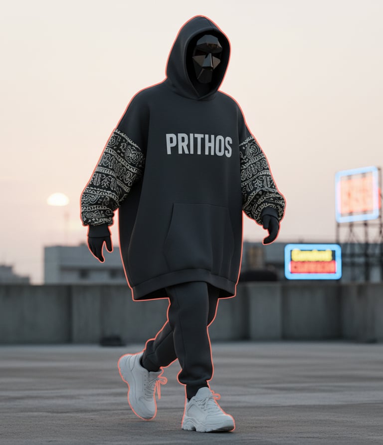 Prithos blends futuristic design with Indian streetwear roots, crafting premium oversized hoodies and tees.